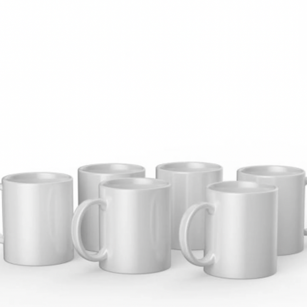 مجموعة من 6 أكواب سيراميك بيضاء للطباعة الحرارية بسعة 340 مل