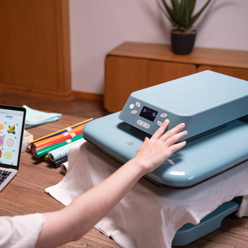 - ابدعي باستخدام مختلف أنواع الفينيل الحراري والمواد الحرارية الأخرى مثل الإنفيوزبال إنك والسبلميشن.